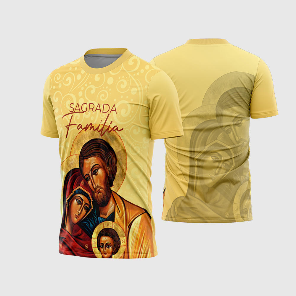 Se o seu grupo pertence à Pastoral Familiar, Encontro de Casais ou simplesmente deseja consagrar o lar, então a Arte Vetor Camisa Religião Sagrada Família Modelo 01 é, sem dúvida, a vestimenta que melhor representa esse amor sagrado. Nós desenvolvemos este layout pensando, principalmente, em resgatar a beleza da arte sacra tradicional em uma peça moderna e vibrante.